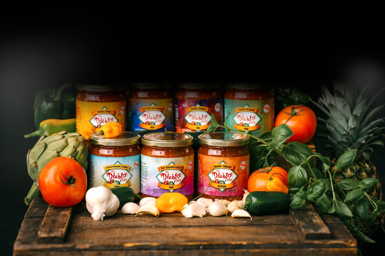 At Little Diablo Salsa, we’re proud to offer you our full line of palate-tempting, all-natural salsas. Our amazing vegetarian salsas are made with only the freshest ingredients like vine-ripened tomatoes, crisp onions, fresh basil and vibrant peppers - one bite and we know you’ll be hooked! From the Garden Original mild to the Double Diablo, our hottest, we know you’ll find a favorite to call your own. We’ve also put both our names on every jar as our personal guarantee of the highest standards for taste and quality!